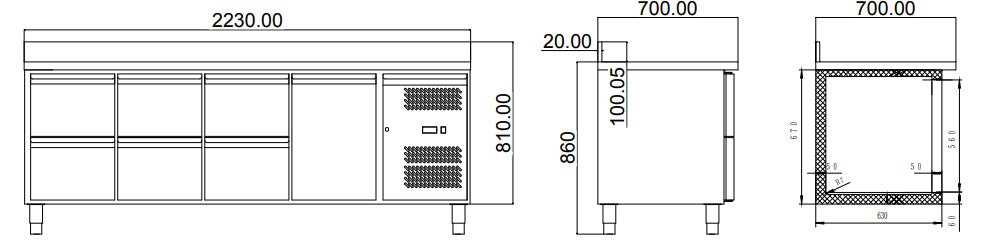 Kühltisch ECO 1/6 mit Aufkantung - GN 1/1