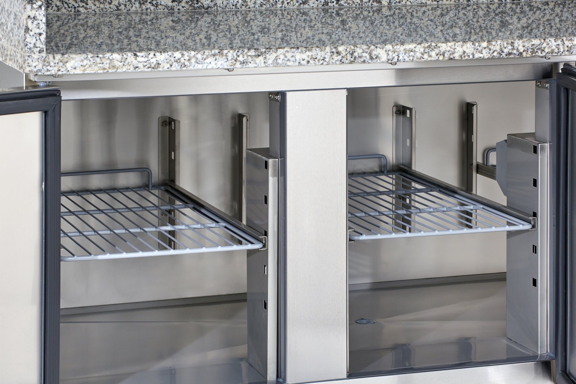 Unsere Pizzatische der ECO-Serie überzeugen mit einer hohen Funktionalität und einer besonders robusten Bauweise. Dank des idealen Temperaturbereichs von +2°C bis +10°C können Sie Ihre Lebensmittel optimal gekühlt lagern. Die praktische digitale Temperaturanzeige und der geringe Energieverbrauch runden das Angebot ab.