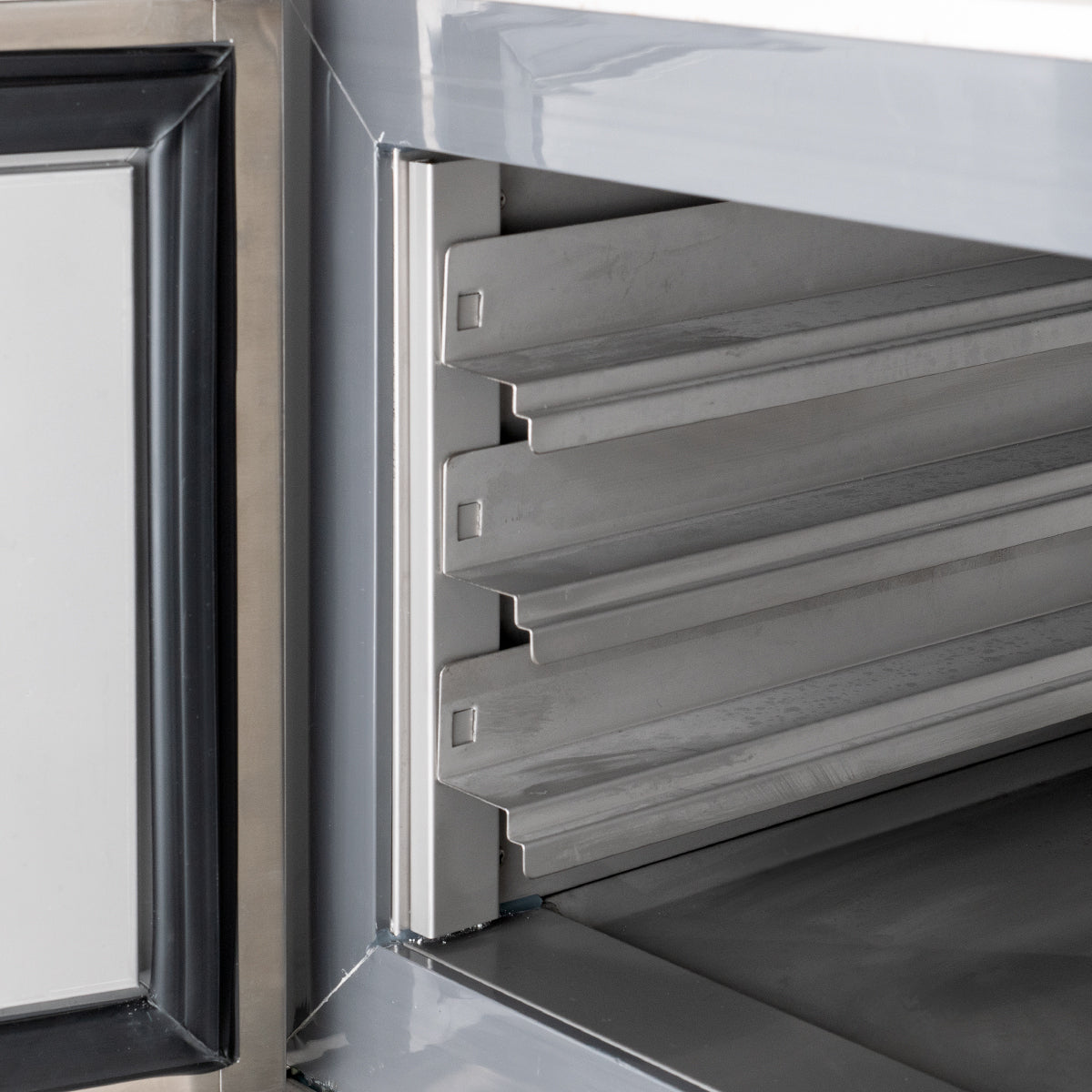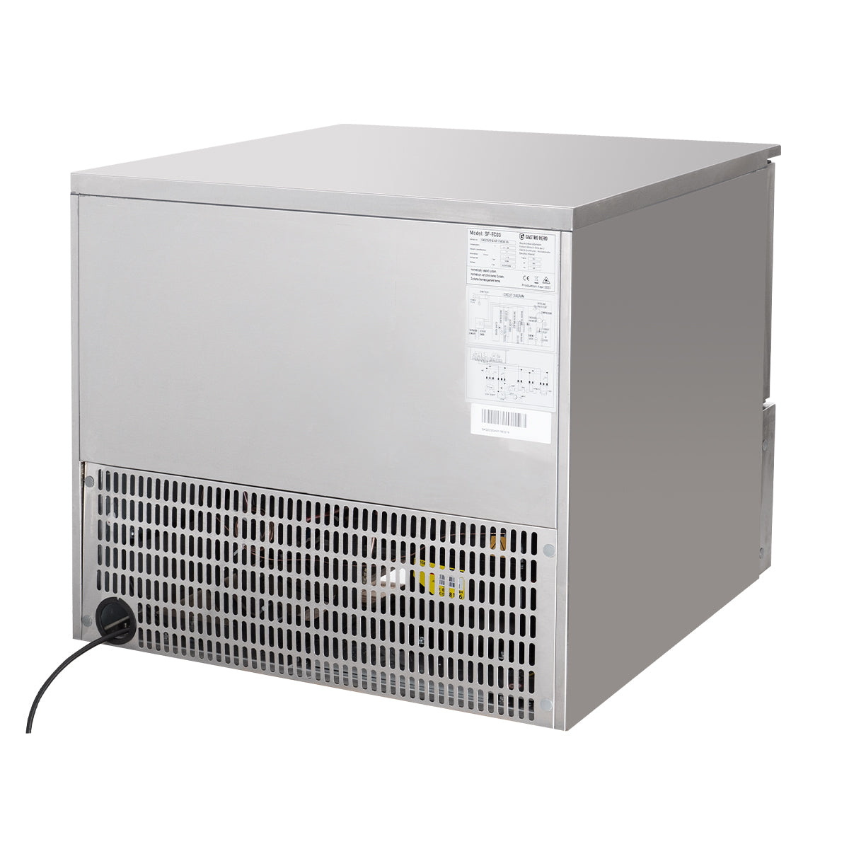 Mit dem neuen Schockfroster Eco werden Ihre Lebensmittel durch Unser hervorragendes Kühlsystem in kürzester Zeit herunter gekühlt. Des Weitern halten Wir Ihre Stromkosten in Grenzen, da unsere Agregate nach erreichen der gwünschten Temperatur den Energieverbrauch beträchtlich absenken. Unser Schockfroster zeichnet sich zu dem durch seine hohe Funktionalität aus, da er Platz für 3 GN 1/1 Tabletts bietet und mit einer automatischen Abtauung, sowie höhenverstellbaren Füßen ausgestattet ist.