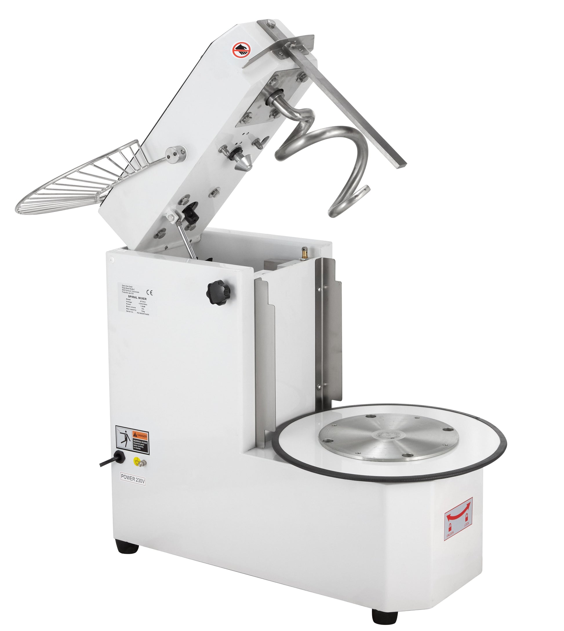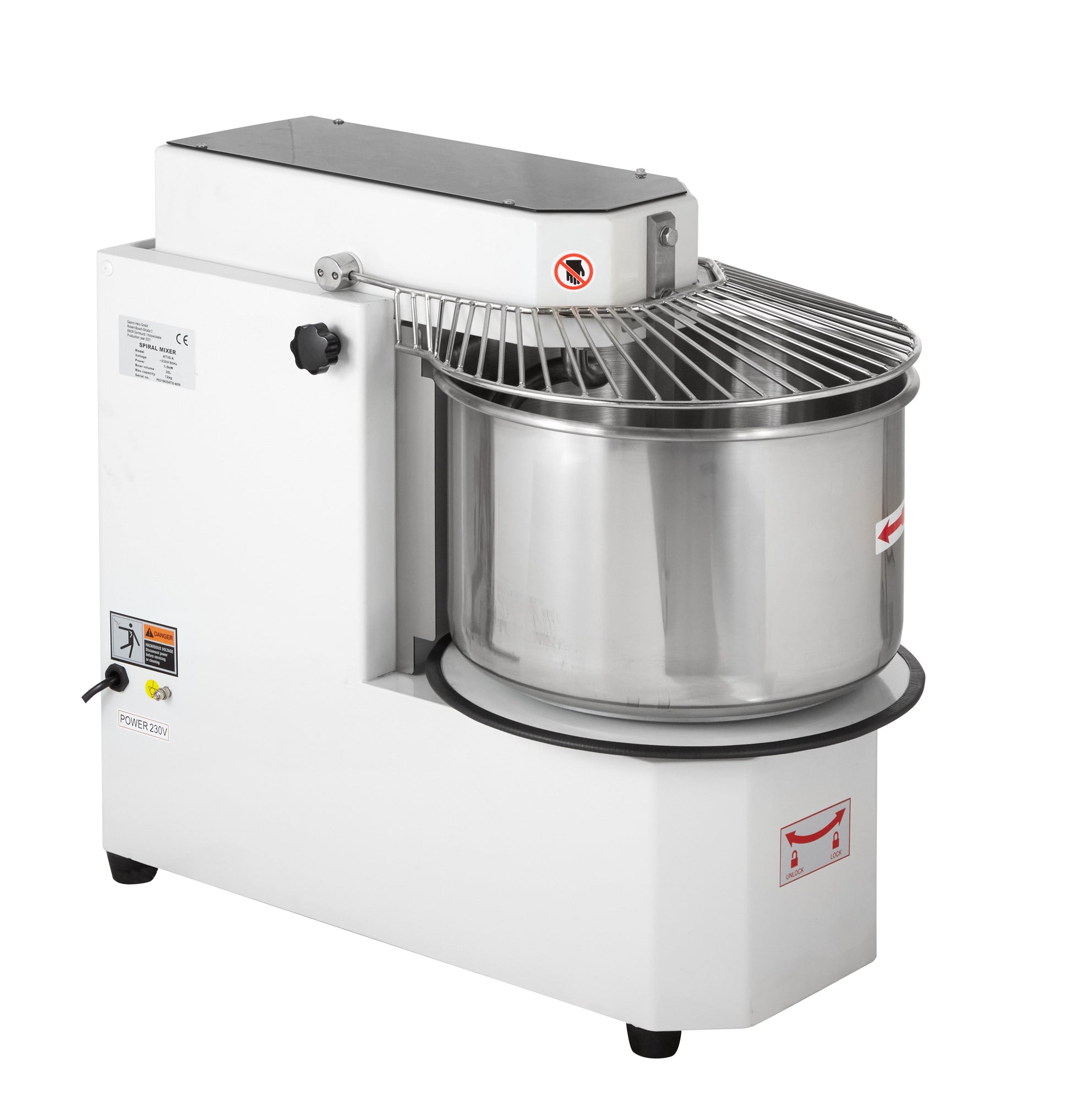 Die Spiralteigmaschine ist die ideale Maschine für das Kneten von Teigen für Pizzerien, Konditoreien und Bäckereien. Die besondere Form des Spiralteigknethakens ermöglicht es in wenigen Minuten, ein perfekt gemischten Teig zu erhalten. Kessel, Knethaken, Teig-Brecher und die Schutzgitter sind aus Edelstahl hergestellt.