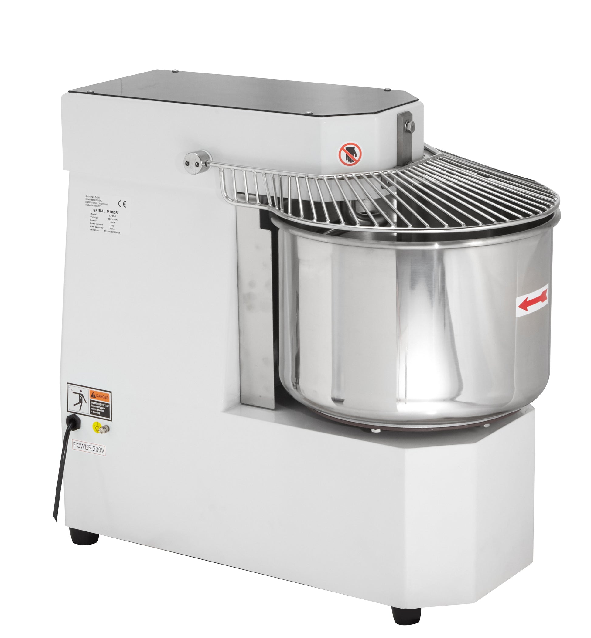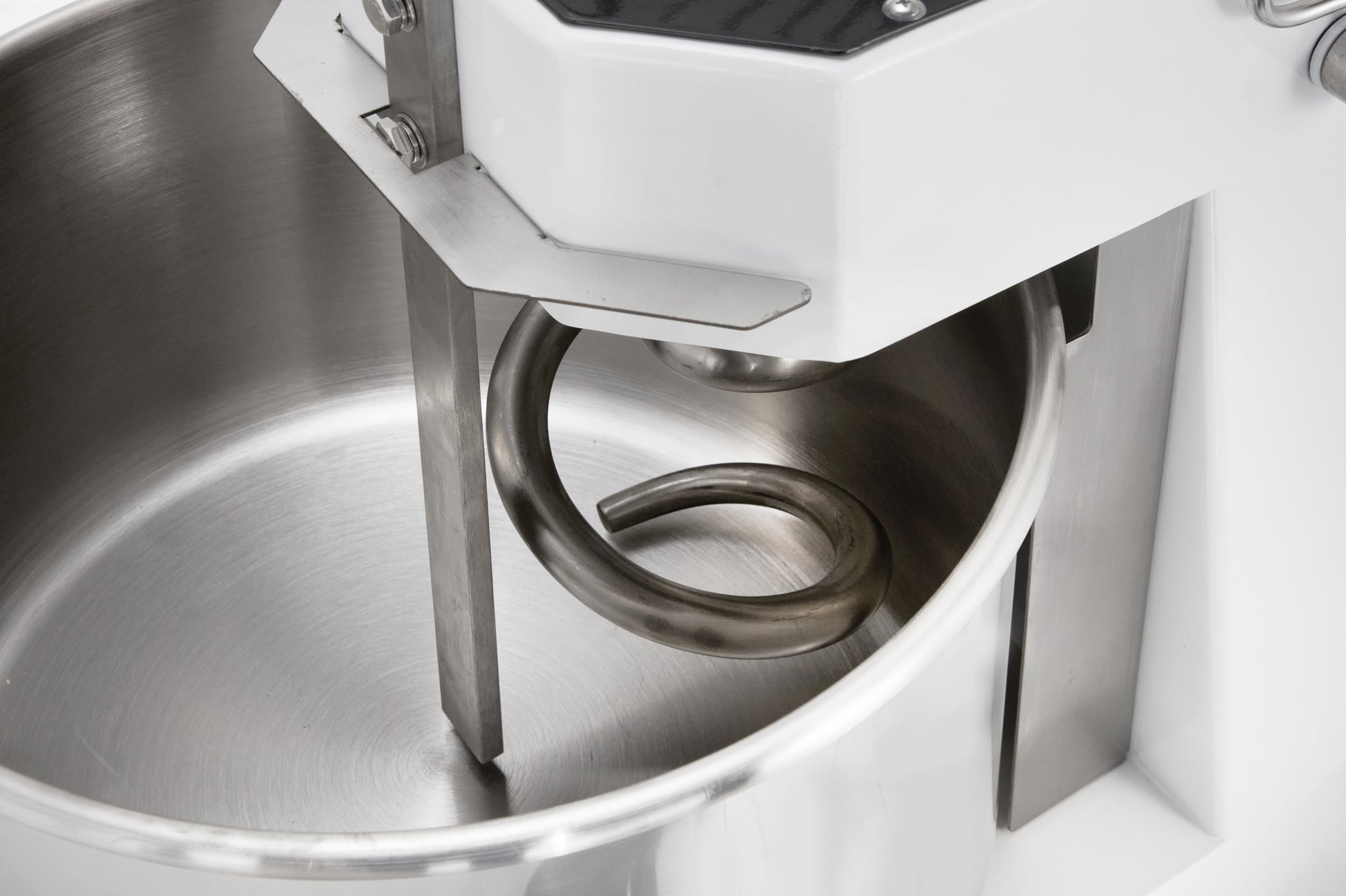 Die Spiralteigmaschine ist die ideale Maschine für das Kneten von Teigen für Pizzerien, Konditoreien und Bäckereien. Die besondere Form des Spiralteigknethakens ermöglicht es in wenigen Minuten, ein perfekt gemischten Teig zu erhalten. Kessel, Knethaken, Teig-Brecher und die Schutzgitter sind aus Edelstahl hergestellt.