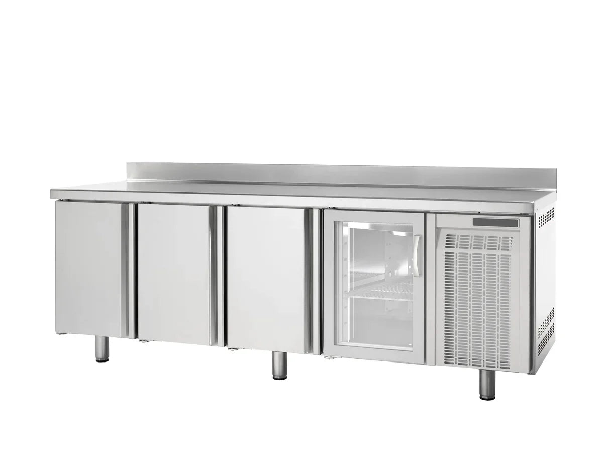 Unsere Tiefkühltische aus der PremiumSerie überzeugen mit modernem Design, hoher Funktionalität, Langlebigkeit sowie einer hochwertigen Verarbeitung. Dank des idealen Temperaturbereichs von -15°C bis -20°C können Sie Ihre Lebensmittel optimal tiefgekühlt lagern. Zudem sind sie dafür konzipiert, einen sehr schnellen PULL-DOWN zu haben, um den Inhalt in kürzester Zeit herunterzukühlen. Das hier verwendete Temperatur-Messsystem vemeidet zu häufiges Anspringen des Aggregats und arbeitet daher besonders energiesparsam und umweltschonend.Sobald die Produkte im Inneren die gewünschte Temperatur erreicht haben, sinkt der Energieverbrauch beträchtlich. Die Tiefkühltische bieten eine perfekte Mischung zwischen Arbeitsfläche und Lagerfläche.