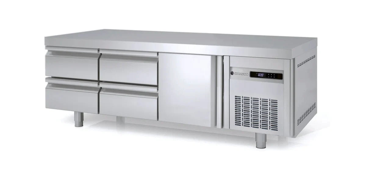 Unsere Unterbaukühltische aus der Premium-Serie überzeugen mit modernem Design, hoher Funktionalität, Langlebigkeit sowie einer hochwertigen Verarbeitung. Dank des idealen Temperaturbereichs von -2°C bis +8°C können Sie Ihre Lebensmittel optimal gekühlt lagern. Das hier verwendete Temperatur-Messsystem vemeidet zu häufiges Anspringen des Aggregats und arbeitet daher besonders energiesparsam und umweltschonend. Sobald die Produkte im Inneren die gewünschte Temperatur erreicht haben, sinkt der Energieverbrauch beträchtlich. Unsere Premium-Kühltische bieten eine perfekte Mischung zwischen Arbeitsfläche und Lagerfläche.