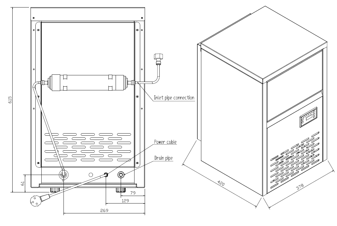 • Produktmaße (B x T x H): 378 x 420 x 615 mm