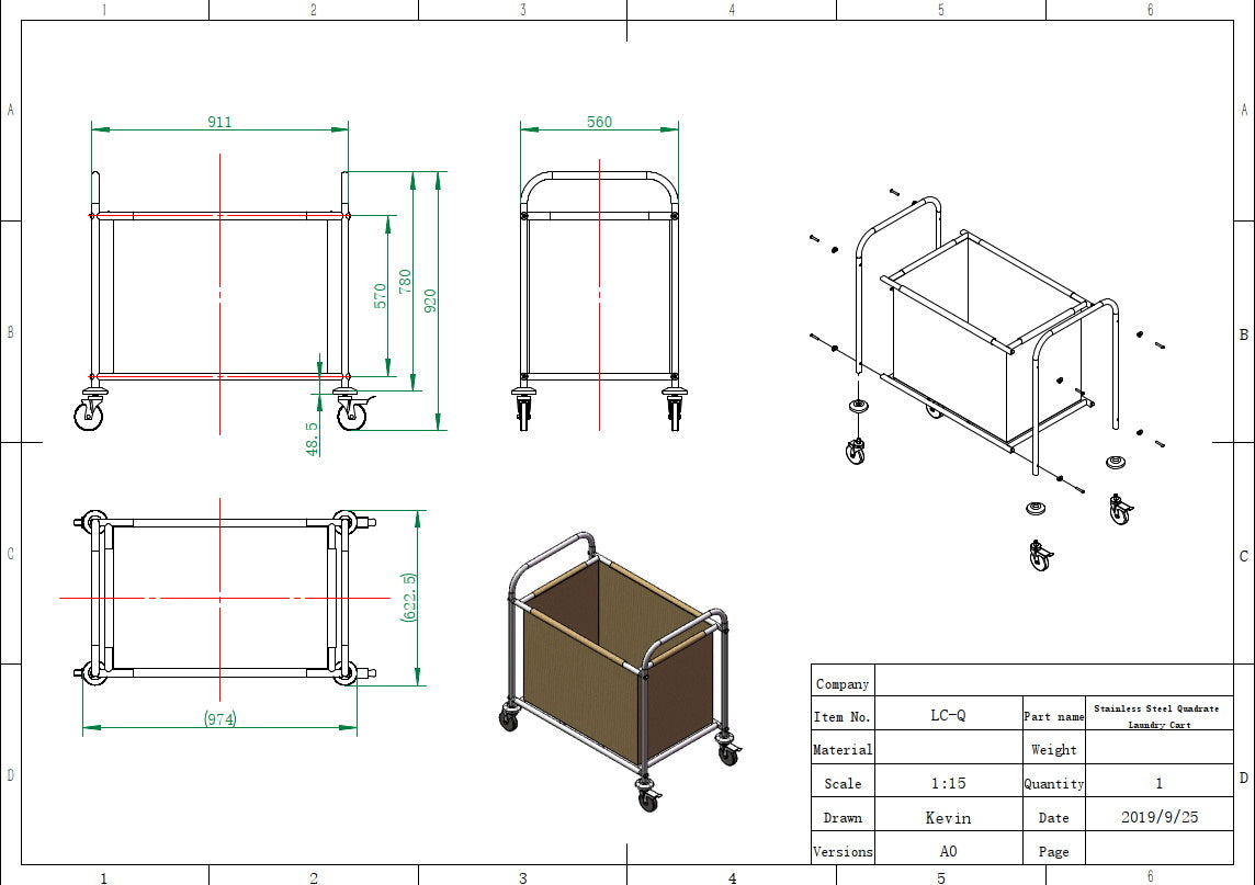 Hinweis: Dieser Artikel wird in Einzelteilen in einem Karton zur Selbstmontage geliefert. Der Ersatz-Wäschesacke zu dem Wäschewagen ECO 135 finden Sie unter der Artikelnummer: LC-QBAG.